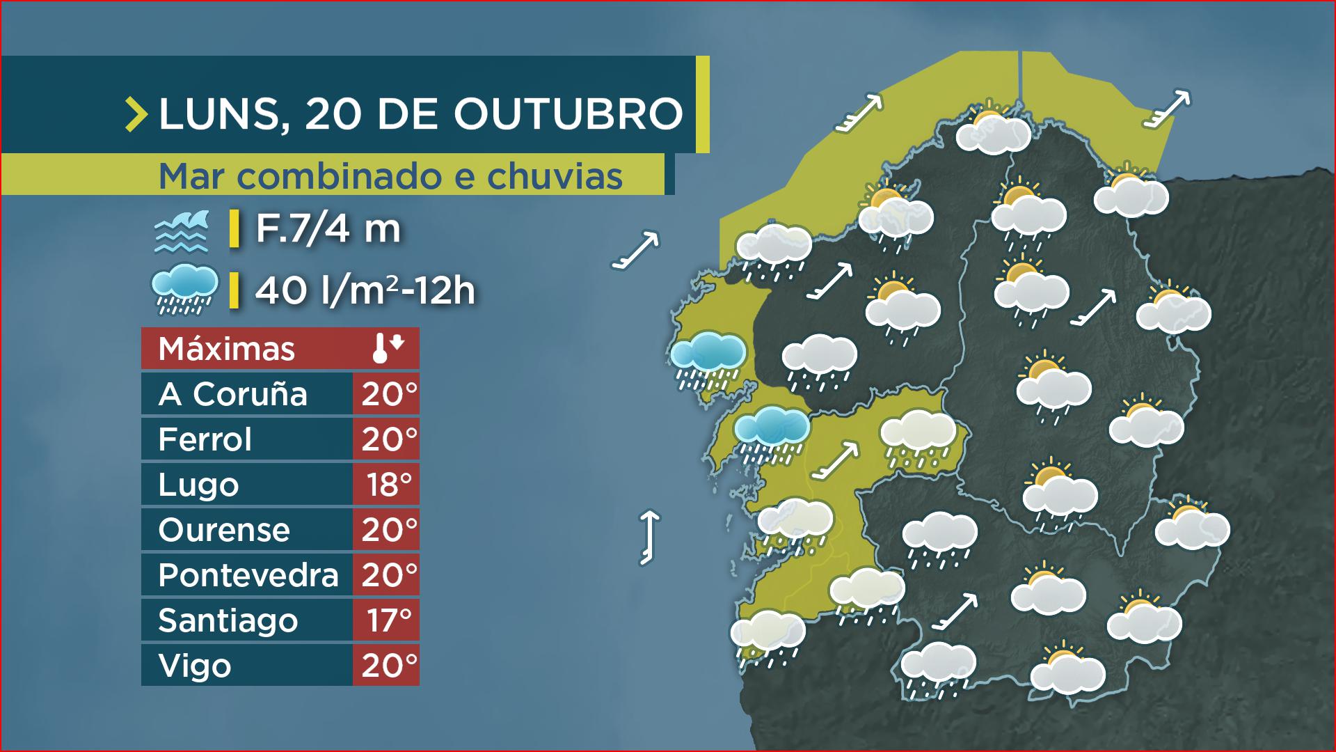 A chuvia instálase en Galicia, onde as temperaturas rozarán os vinte graos