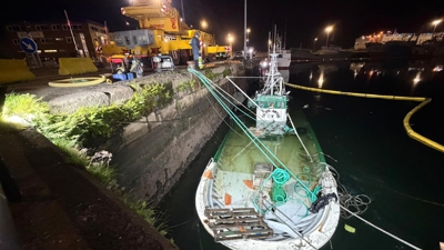 Afunde un pesqueiro abandonado na dársena viguesa de Bouzas
