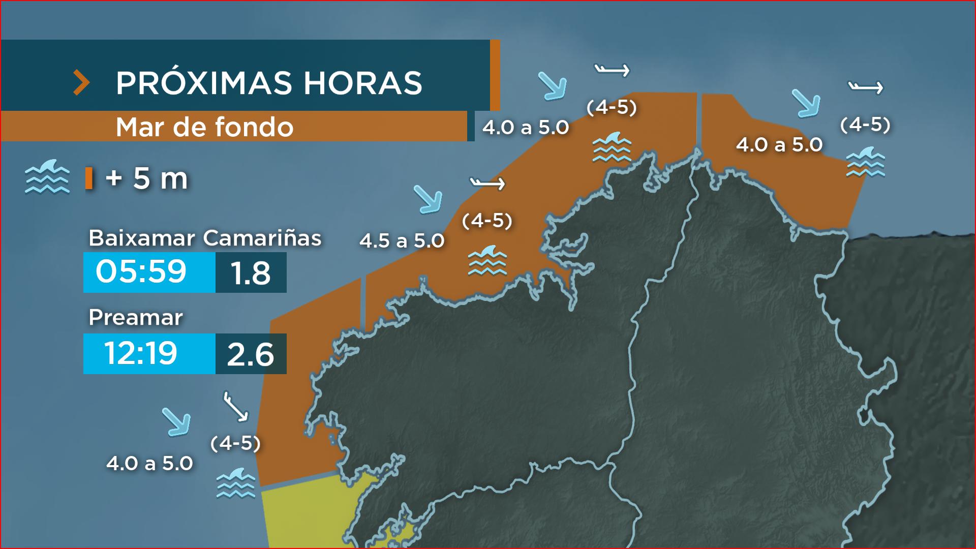 Avisos por mar de fondo durante o mércores
