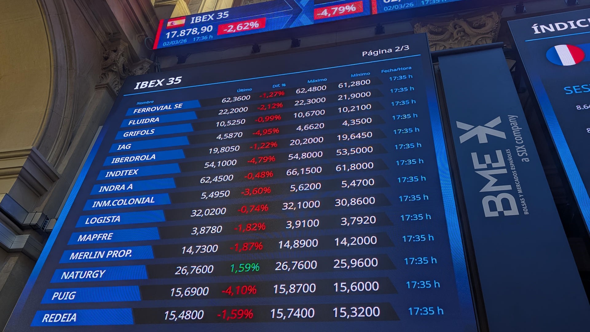 A baixada do indicador nesta xornada é a máis pronunciada do CAC-40 no que vai de 2026.