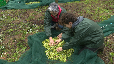 Están na recta final dunha campaña que arrincaba no Pilar e rematará na ponte de decembro. Buscan o envero, o punto óptimo de maduración das olivas.