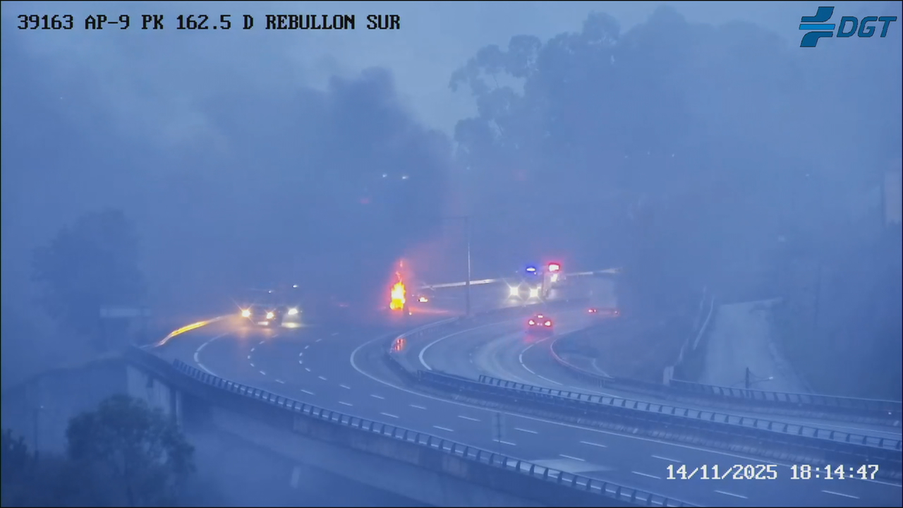 Por causas que se descoñecen o camión comezou a arder mentres circulaba pola autoestrada do Atlántico, a AP-9, á altura de Rebullón, no concello de Mos. Foi no quilómetro 164 en sentido Vigo. Non se descarta que as lapas foran provocadas porque o camión sufrira un accidente.