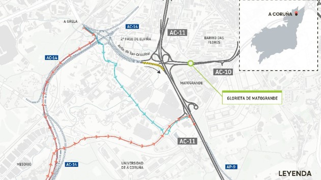 Esta situación manterase de forma continuada tanto en días laborais como non laborables desde o 13 de xaneiro ás 10:00 horas ata o 17 de marzo ás 18:00 horas. Recoméndase aos tráficos procedentes do polígono de Agrela o uso da AC-14, como alternativa de longo percorrido, e para o curto e medio percorrido a través da avenida da Universidade. Tamén se recomenda evitar a glorieta de Matogrande dado o seu nivel de conxestión.