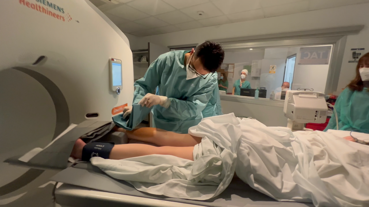 A intervención foi realizada polos radiólogos Amad Abu-Suboh, José Manuel Fernández, Manuel Trillo e Pablo Gómez, e xunto a eles participou un dos referentes a nivel nacional, José Antonio Narváez, o xefe clínico da sección de Radioloxía do Hospital Universitario de Bellvitge.
