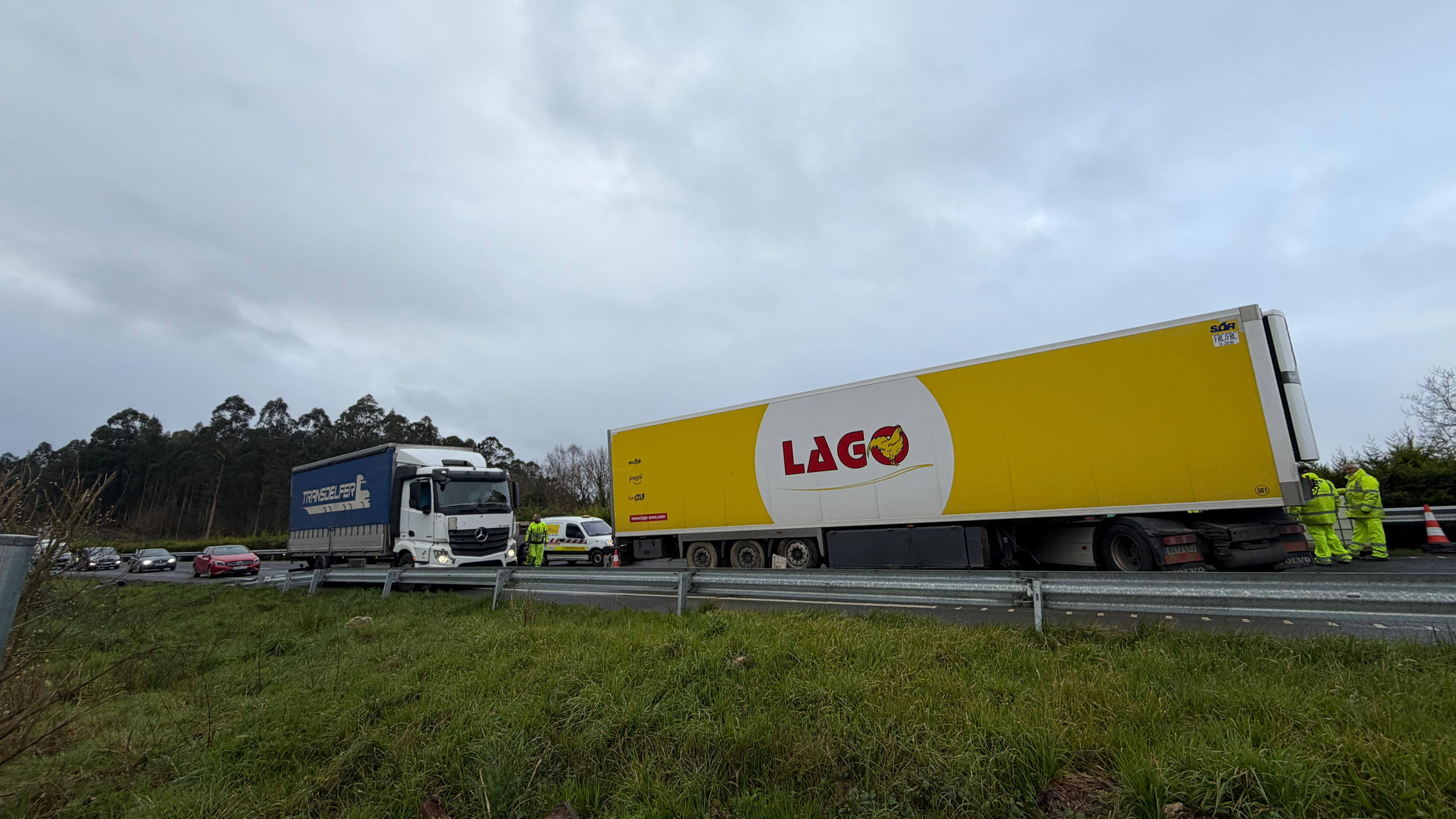 Á súa vez, desde o 112 precisaron que foron varios particulares e o propio condutor os que informaron de que o camión batera contra a mediana, quedando cruzado na vía o vehículo, que transportaba carne de polo.