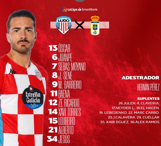Equipo titular do Lugo. Jesús, Barreiro e Sebas Moyano as novidades no equipo titular