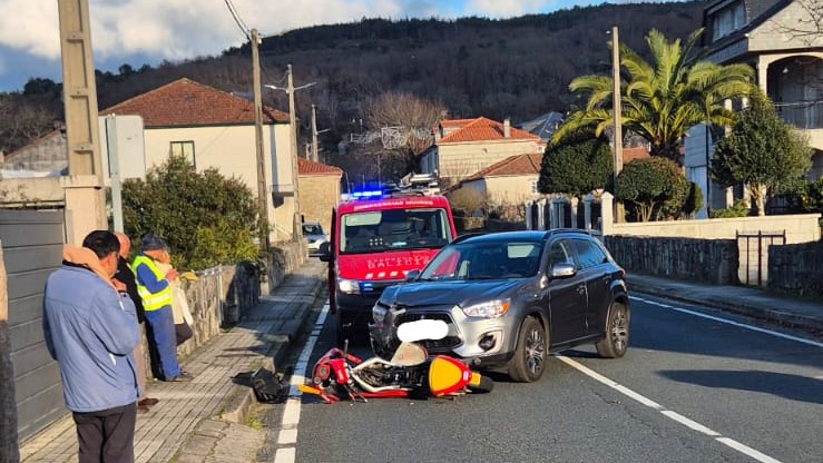 Un motorista quedou ferido grave tras bater contra un coche na tarde deste sábado no concello de Lobeira. O home tivo que ser trasladado nun helicóptero medicalizado.