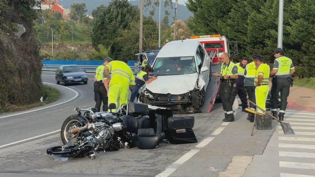 Un motorista e o seu acompañante foron trasladados tras chocar contra un turismo na estrada PO-551 ao seu paso por Domaio, en Moaña (Pontevedra).
