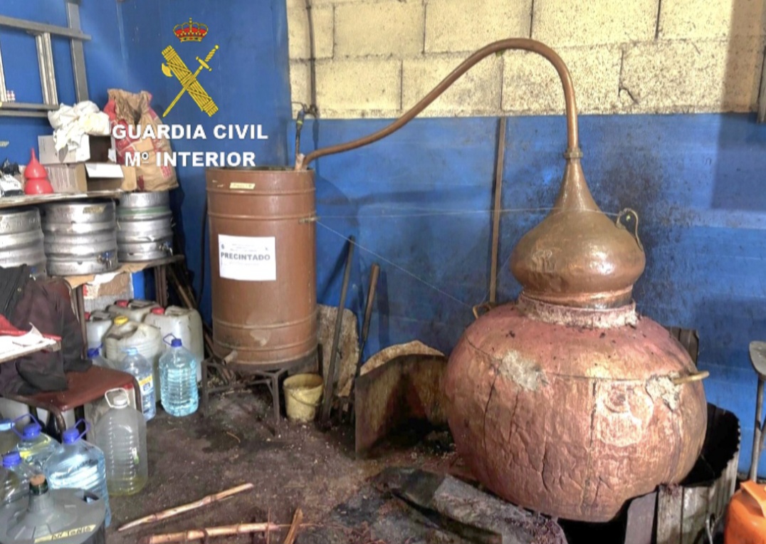 Comisados máis de 3.600 litros de augardente nunha destilería ilegal en Ponteareas