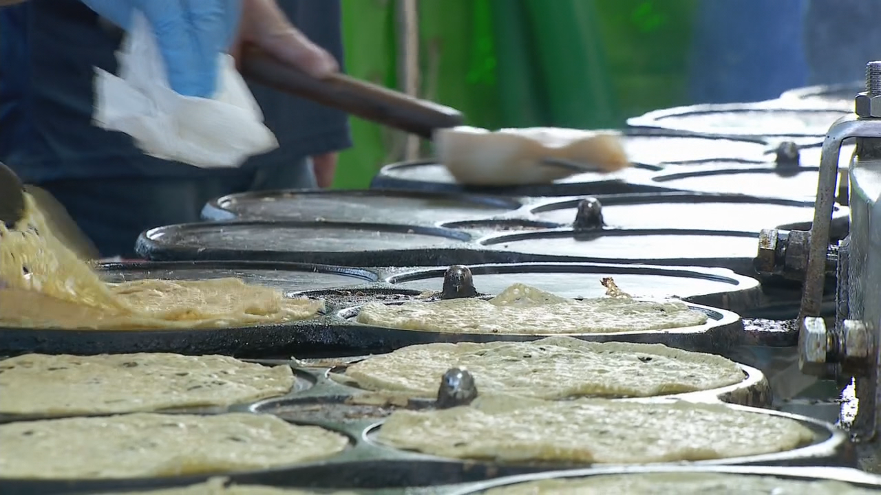 As filloeiras non paran de fumear en Lestedo no día grande da súa festa. Desde as 8 da mañá, preparan unhas dúas mil filloas por hora.