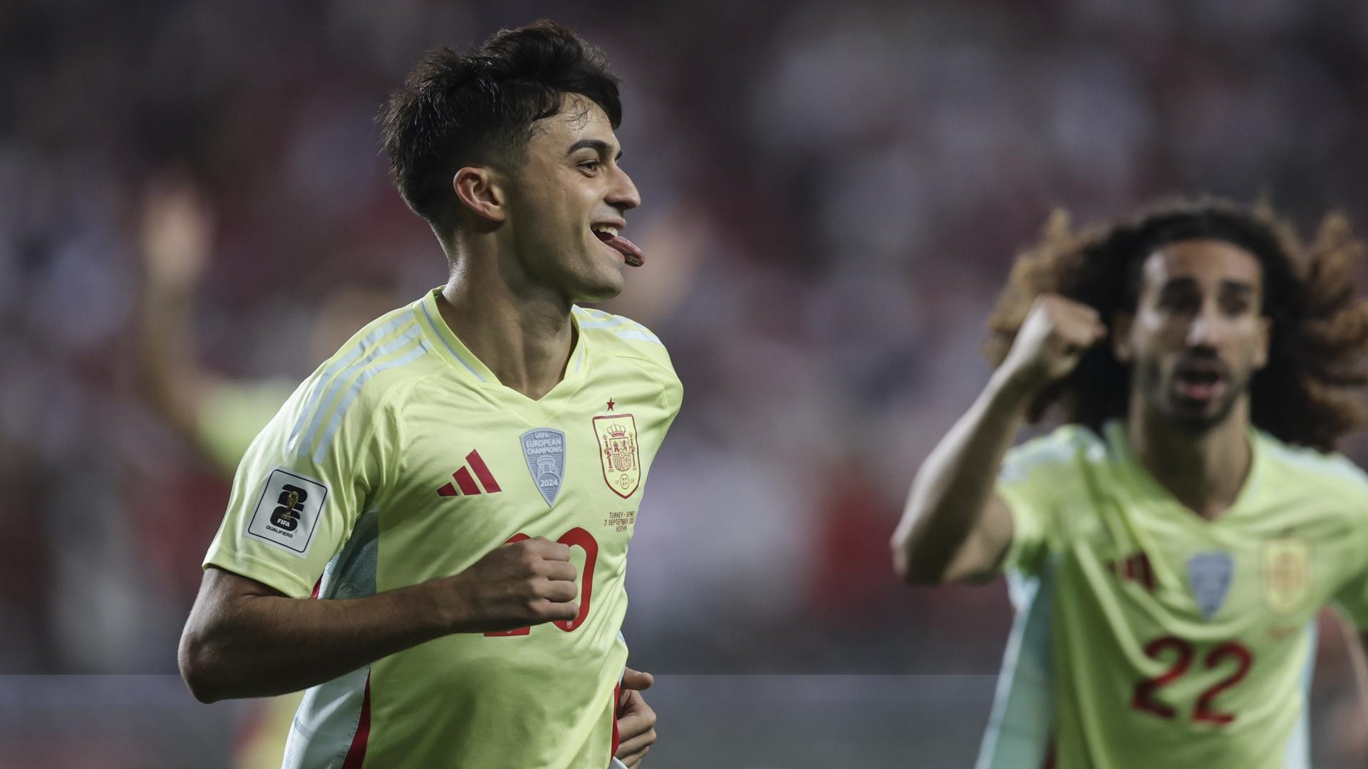 Míkel Merino anotou un hat trick, e tamén marcaron Pedri (2) e Ferrán