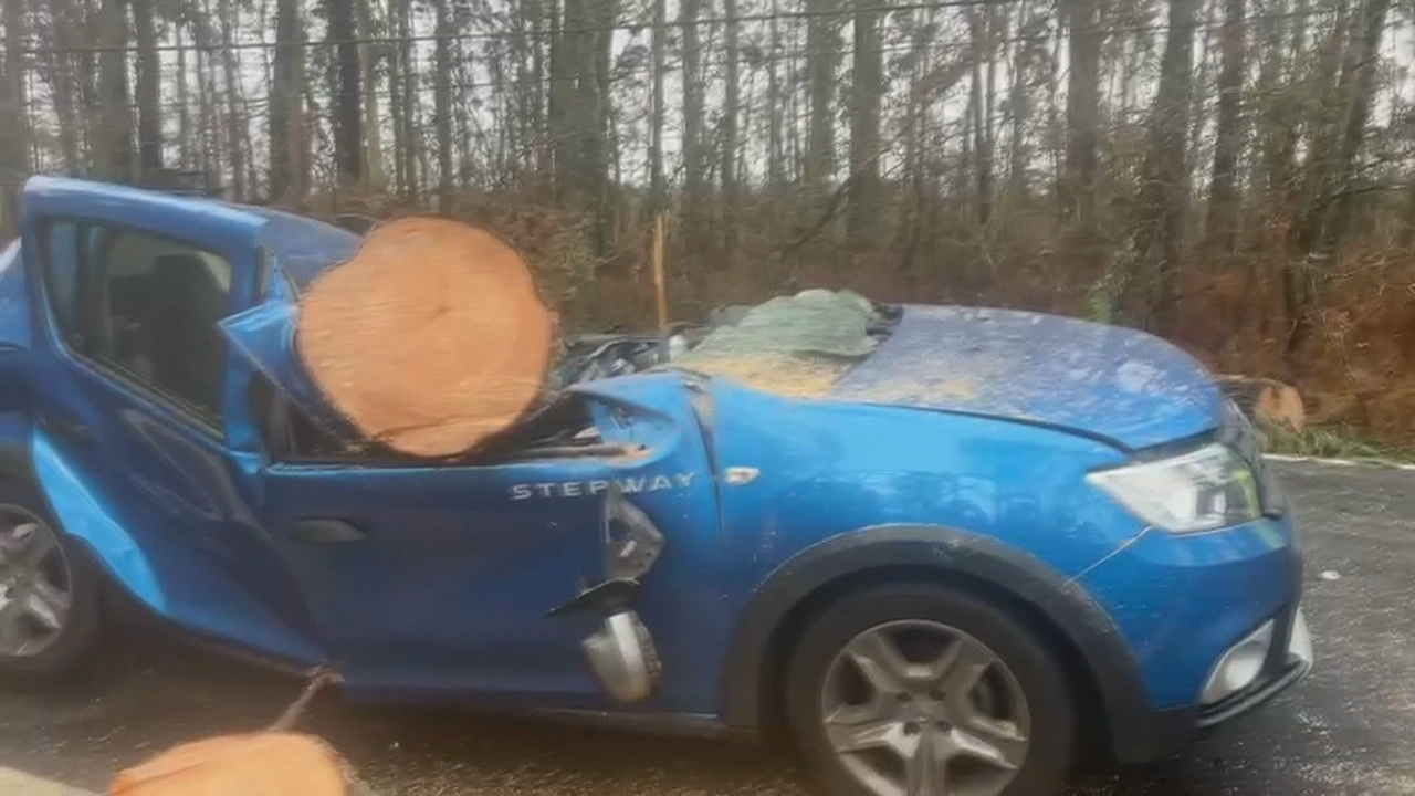 A árbore de tres toneladas esmagou o vehículo da moza, de vinte anos, que só sufriu feridas leves
