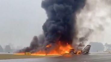 Imaxes difundidas desde o aeroporto mostran a aeronave envolta nunha gran bola de lume tras o impacto.