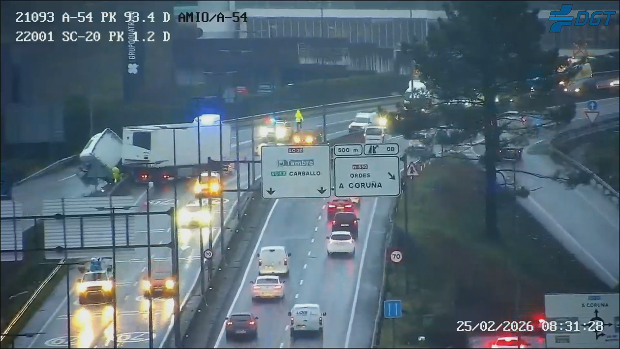 O tráfico permaneceu cortado nun dos carrís, en dirección Santiago. A Garda Civil regula a circulación na zona.
