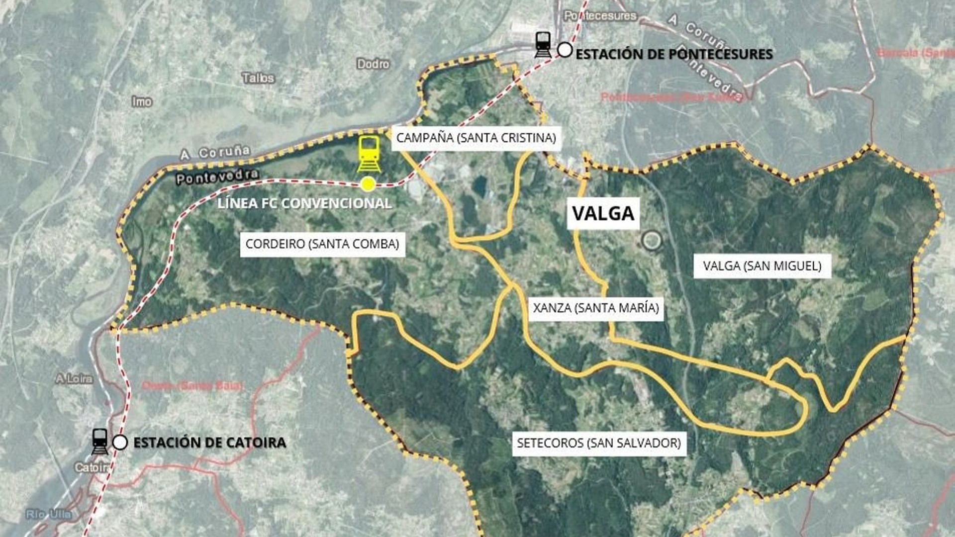"O apeadeiro situarase na liña de Vilagarcía á bifurcación de Angueira, no trazado en vía única que vai paralelo ao eixo atlántico. Estará na contorna da área industrial que hai nesa zona, prestando un servizo moi útil para todos os traballadores e para os veciños de Valga", subliñou Losada, recoñecendo que a localización exacta aínda está por decidir a partir da licitación coñecida este martes.