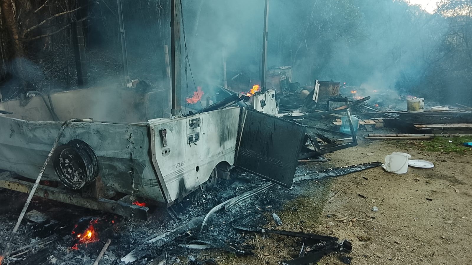 Segundo transcendeu, no interior do alboio había unha bombona de butano e gasolina. Tanto a caravana coma a pequena construción quedaron totalmente calcinados.