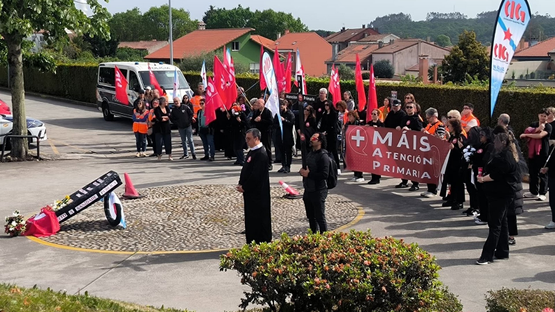 Na mañá deste xoves, CIG-Saúde convocou unha concentración fronte á sede da consellería, simulando un enterro, para ilustrar a "morte" da atención primaria. Varias decenas de persoas participaron na concentración, cun cadaleito e un cura que representaron o enterro do servizo.