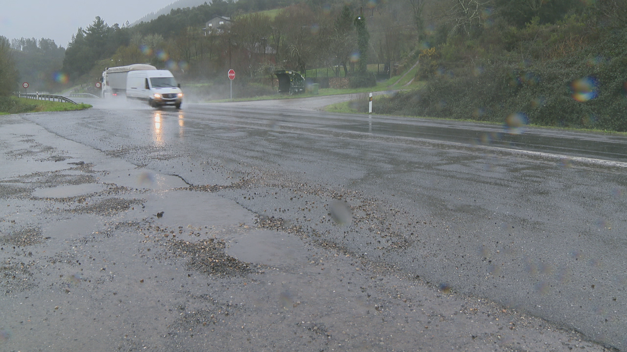 Os populares alertaron do risco que supón para a seguridade viaria o mal estado da estrada e criticaron o Goberno por limitarse a parcheala.