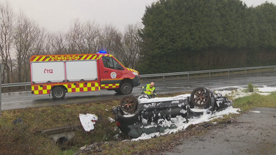 Ferido un matrimonio tras saír da vía e envorcar o seu coche en Muras