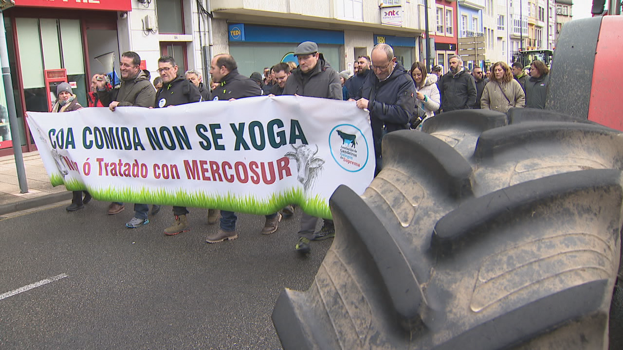 Tras unha pancarta na que podía lerse “Coa comida non se xoga. Non ao tratado con Mercosur”, os manifestantes percorreron un tramo da rolda da Muralla e varias rúas do centro histórico, unha marcha na tamén participou unha vaca de raza rubia.