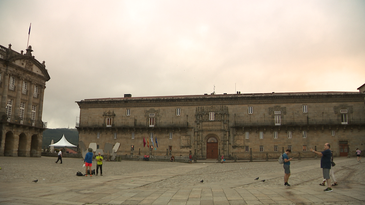 Este 25 de xullo deixa unha imaxe inédita na praza do Obradoiro: o Hostal dos Reis Católicos pechado por unha folga dos traballadores.