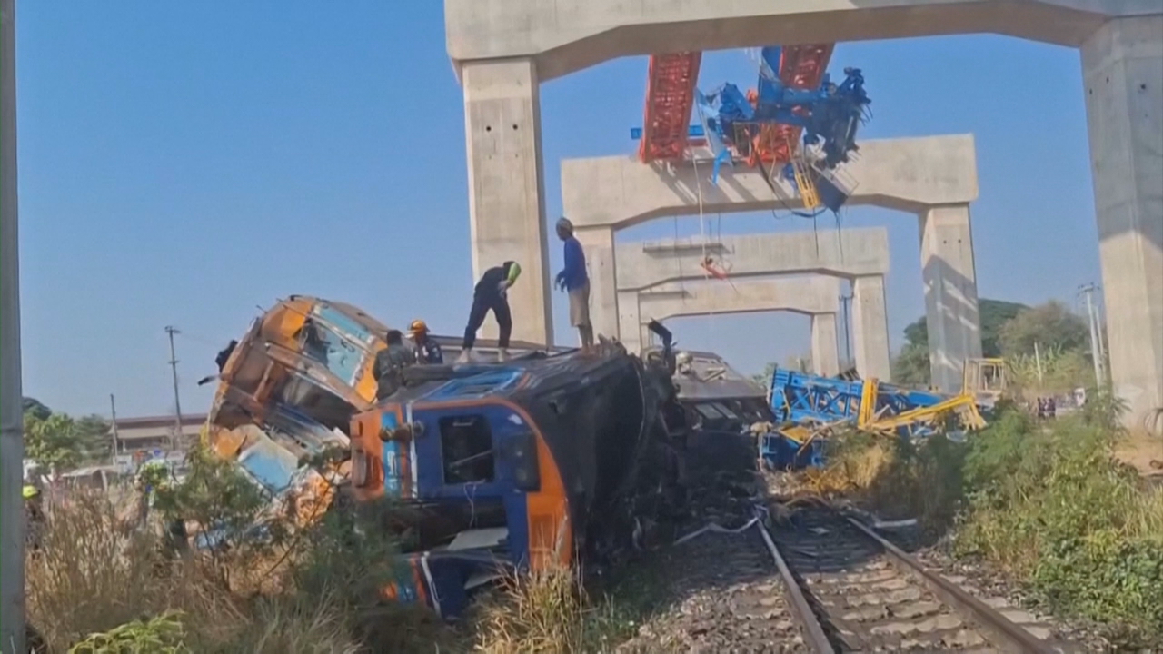Polo menos 22 mortos e 55 feridos ao caer un guindastre sobre un tren en movemento en Tailandia