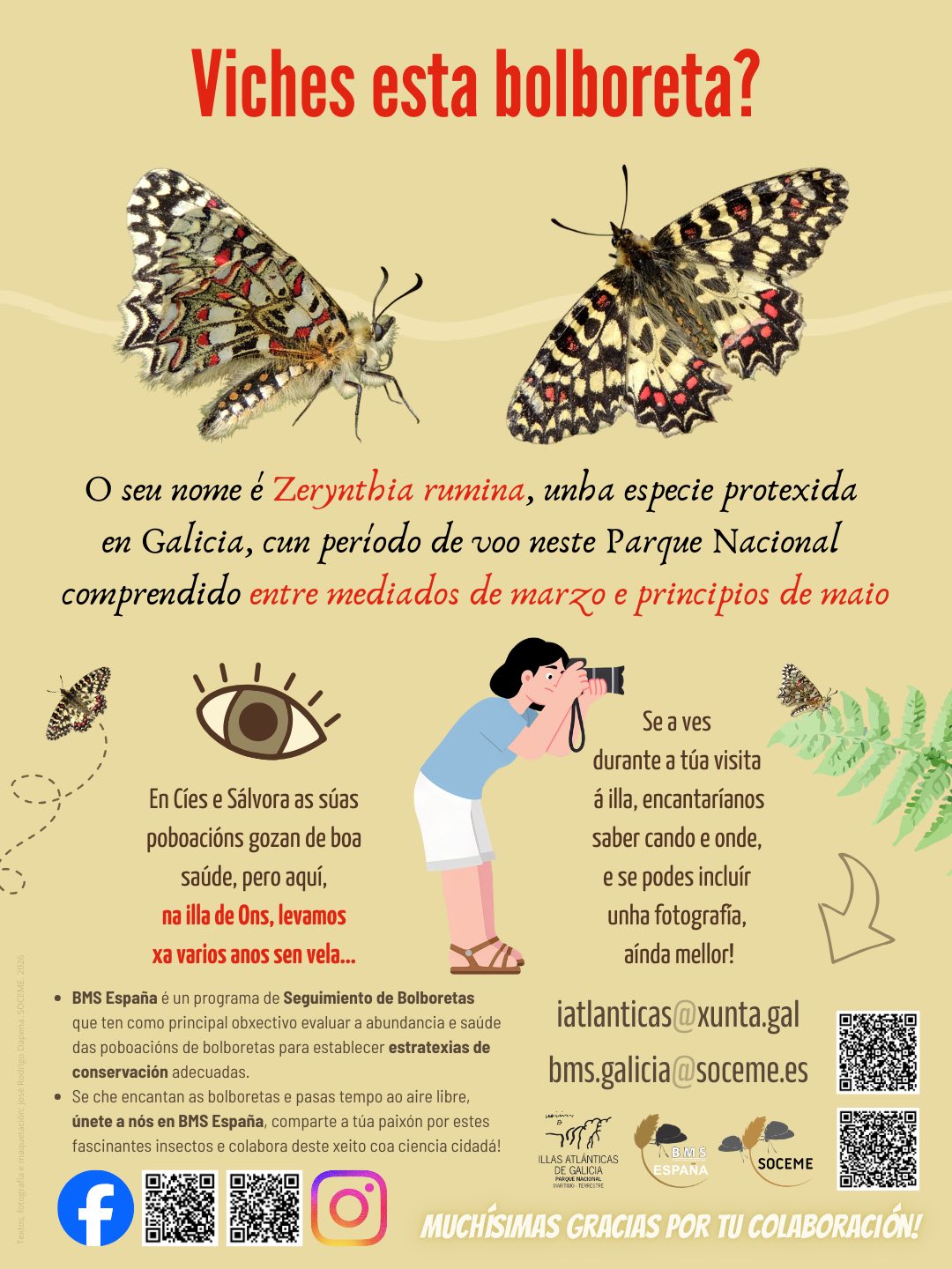 A Sociedade para a conservación e estudo das bolboretas en España pídelles aos visitantes da illa de Ons que informen e fotografen se atopan algún exemplar