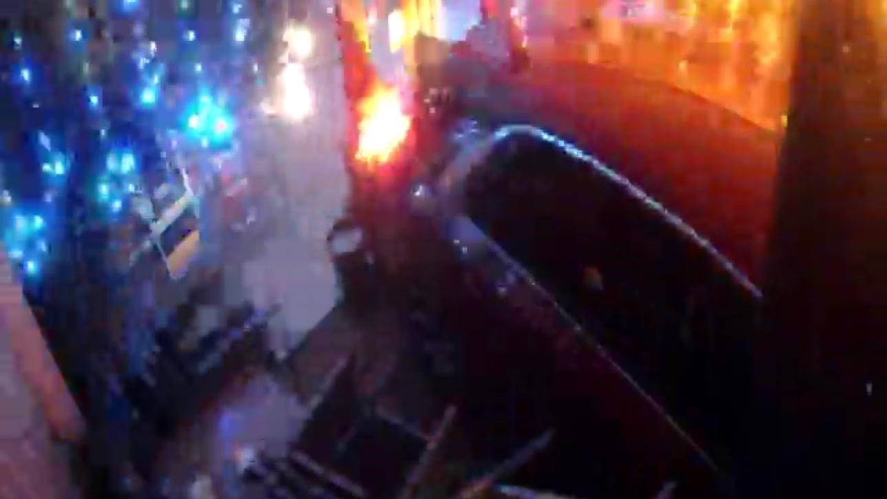 As cámaras de seguridade gravaron o momento no que o coche se empotra contra o edificio e tamén a entrada dos ladróns.