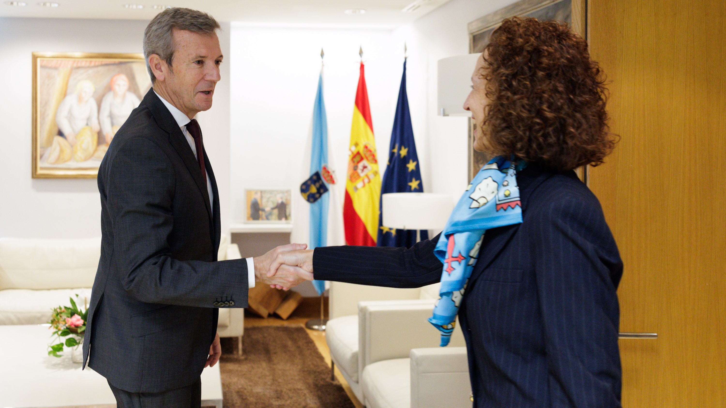 O presidente da Xunta, Alfonso Rueda, mantivo esta semana o seu primeiro encontro institucional coa nova fiscal superior de Galicia, Carmen Eiró, con quen abordou os retos que enfronta a Xustiza na comunidade.