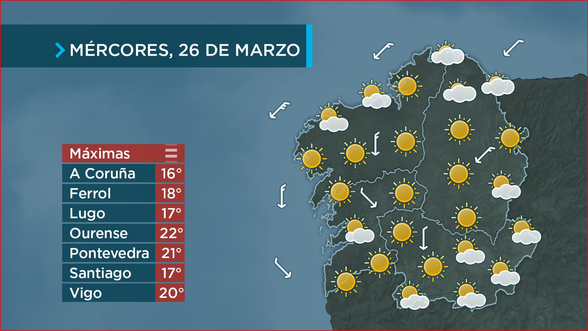 Unha fronte cruza a comunidade e provoca descenso das máximas