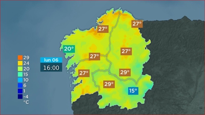 Ceo galego salpicado por nubes altas e máximas cálidas