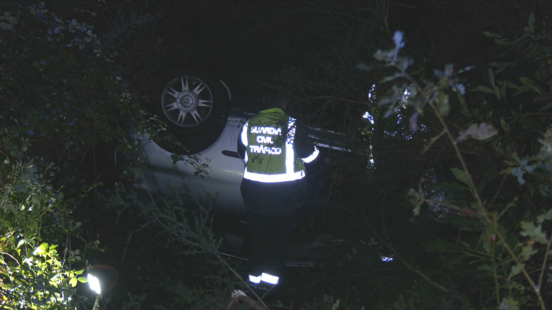 Foi un particular quen, ao redor das 0:30 horas, contactou co 112 Galicia e explicou que un coche acababa de saír da vía e caer por un desnivel no quilómetro 10 da PO-344, en Tebra, onde acabou envorcado.