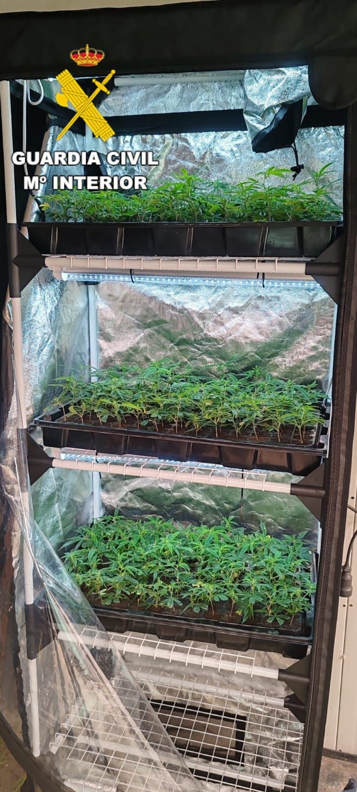 A Garda Civil inspeccionou a mencionada edificación, e localizou no seu interior unha plantación indoor con 800 plantas de cánnabis sativa, dotada de sistemas de iluminación, ventilación e control térmico e 430 gramos de marihuana seca e preparada para a súa manipulación, polo que se incautou dos efectos atopados.