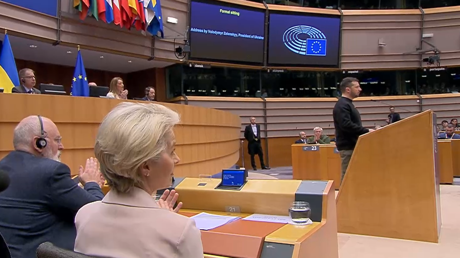 "Estamos a achegarnos á Unión Europea, Ucraína será membro da Unión Europea", dixo Zelenski no medio dos aplausos do pleno extraordinario da Eurocámara convocado este xoves pola súa visita.