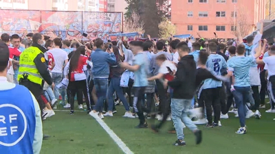 No encontro Celta B-Deportivo os seguidores locais que accederon ao campo realizaron xestos de provocación aos afeccionados visitantes