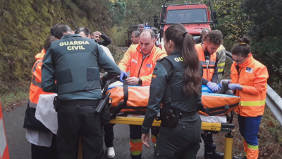 Rescatan un bombeiro forestal tras caer por un desnivel de quince metros