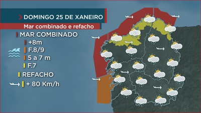 O mar aínda en aviso vermello e a chuvia a menos durante a tarde