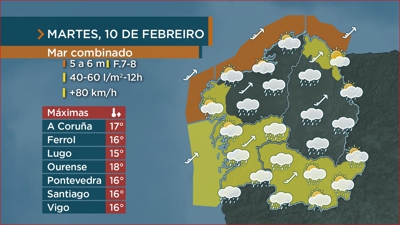 Vento de case 120km/h e acumulados próximos a 50 litros en 12 horas en Galicia