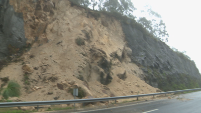 Os técnicos analizan as causas do desprendemento sobre a autovía en Baiona