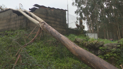 Cae un eucalipto e destrue un galiñeiro ante desesperación dos propietarios que levan 3 anos reclamando que limpen o monte