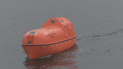 Un arrastreiro de Cangas, o primeiro pesqueiro en instalar a bordo un bote salvavidas insomerxible