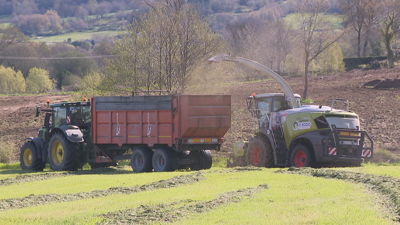 Os gandeiros aproveitan o tempo seco para ensilar a herba