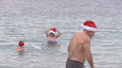 Ducias de bañistas desafian o frio e cumpren co primeiro baño do ano en Riazor