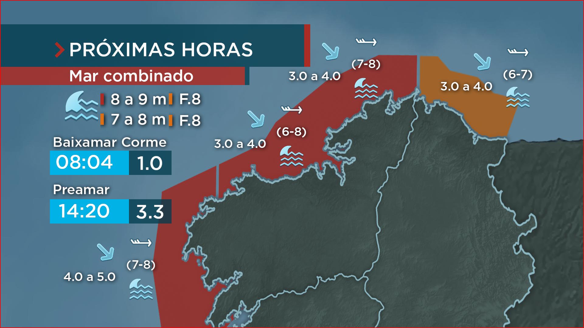 O aviso vermello no litoral mantense de madrugada