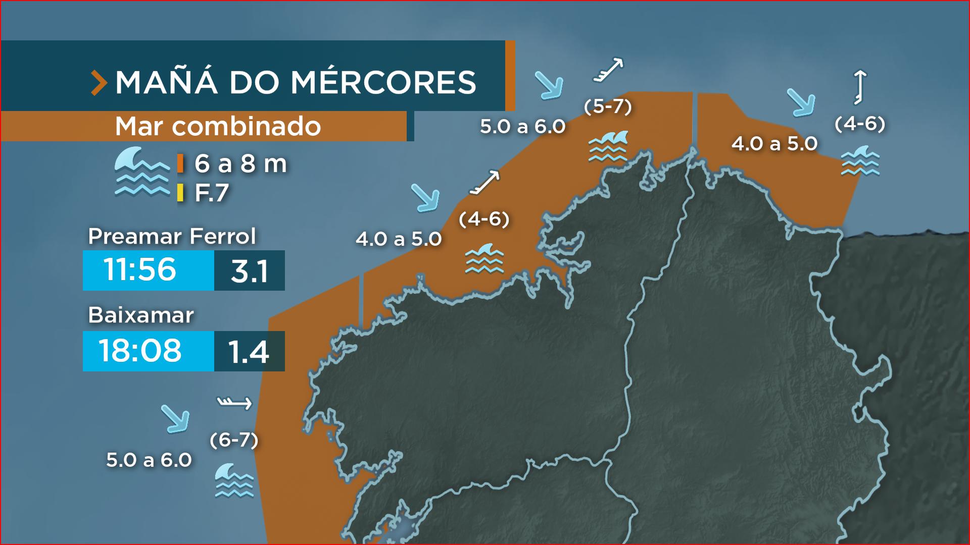 Máis vento pola mañá e ondas máis altas pola tarde de mar de fondo