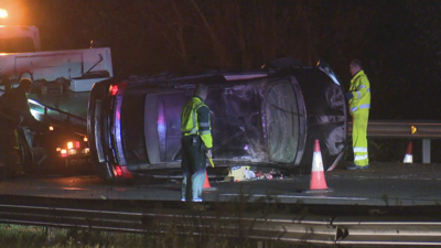 Salta a medianeira, acaba envorcado no sentido contrario e sae polo seu propio pé
